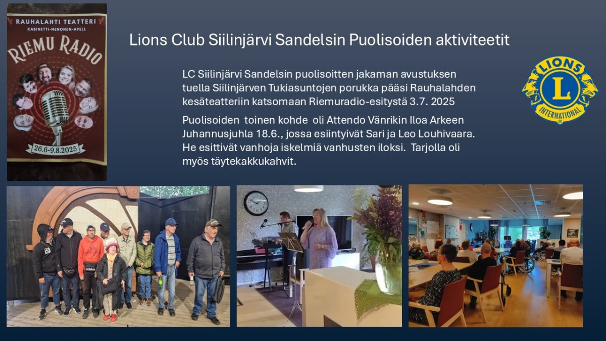 Saimme klubiin uuden jäsenen Kaisa Haatainen (kuva) on uusi Sandels leijona. Samassa kokouksessa palkittiin klubin jäsen Juhani Hakkarainen 40 vuotta leijonana Johannes Eskelinen 30 vuotta leijonana Juha Haatainen 10 vuotta leijonana cveronit jakoi klubi presidentti Kari Hiltunen.