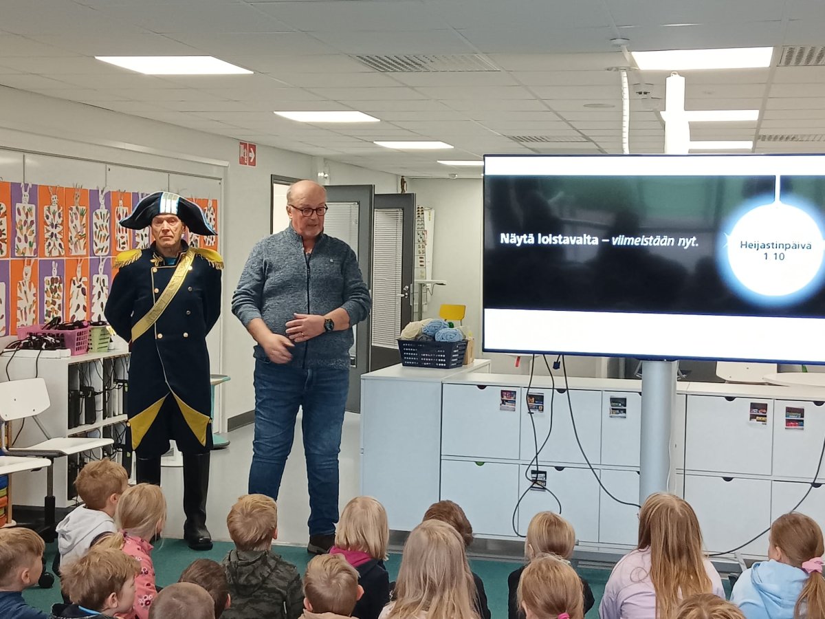 Eversti Sandels oli myös mukana koululais tapahtumassa